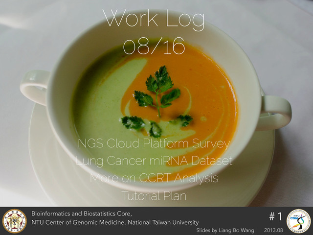National Taiwan University Slides by Liang Bo Wang New ID R1 R2 R3 R4 Sample Name 878T Eco-Ca-246 838T 818T miRBase 20 1,079,369 177,113 484,026 868,084 Genome 3,515,167 1,499,610 2,283,319 3,634,012 Unmapped 11,497,325 12,756,920 9,553,949 11,720,879 Total reads 15,012,492 14,256,530 11,837,268 15,354,891 New ID N1 N2 N3 N4 Sample Name 870T 884T Eco-Ca-373 65T miRBase 20 100,060 1,971,123 309,174 332,712 Genome 757,564 5,183,532 1,659,204 2,911,938 Unmapped 7,807,853 15,623,583 17,202,518 11,709,561 Total reads 8,565,417 20,807,115 18,861,722 14,621,499