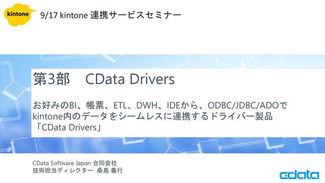 第3部 CData Drivers お好みのBI、帳票、ETL、DWH、IDEから、ODBC/JDBC/ADOで kintone内のデータをシームレスに連携するドライバー製品 「CData Drivers」