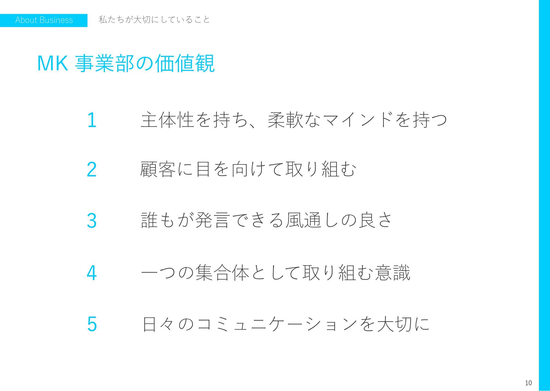 MK 事業部の価値観 About Business 私たちが大切にしていること 1 2 3 4 5