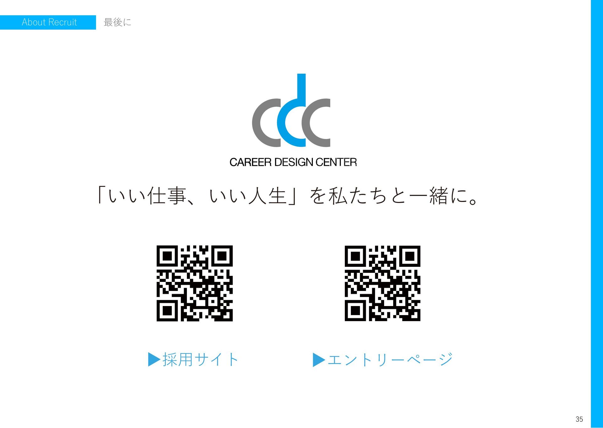 最後に 「いい仕事、いい人生」を私たちと一緒に。 ▶エントリーページ ▶採用サイト About Recruit 35