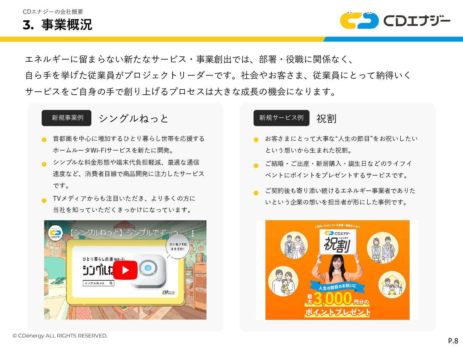 8. © CDenergy ALL RIGHTS RESERVED. P.9 3.Ă Ă 事業概況 (ČĂ
