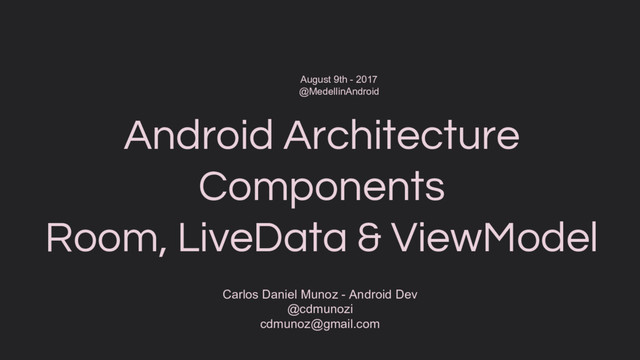 Sesión del mes de Agosto del MeetUp de Medellín Android, abordando los nuevos Android Architecture Components, mostrando tanto el detalle técnico como el de implementación con un ejemplo funcional.