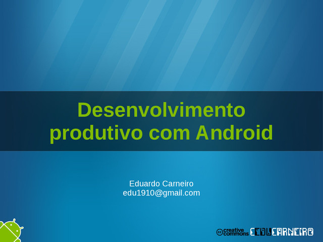 de Aplicações Móveis pelo CESAR.edu • Desenvolvedor de aplicações móveis, especialista em Android, na Abacomm Brasil • Professor no Centro Universitário de João Pessoa