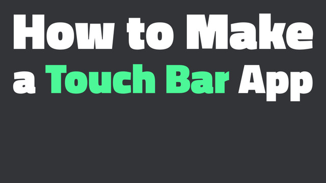 override func makeTouchBar() -> NSTouchBar? { let touchBar = NSTouchBar() touchBar.delegate = self touchBar.customizationIdentifier = .touchBar touchBar.defaultItemIdentifiers = [.smaller, .equal, .bigger] touchBar.customizationAllowedItemIdentifiers = [.smaller, .equal, .bigger] return touchBar }