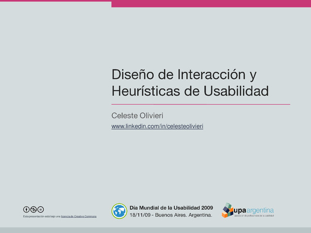 Taller de Diseño de Interacción y Heurísticas de Usabilidad, dictado por Celeste Olivieri en el Día Mundial de la Usabilidad 2009, Buenos Aires, Argentina. Organización: UPA Argentina.
