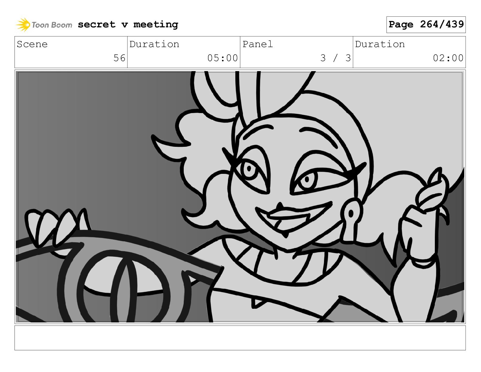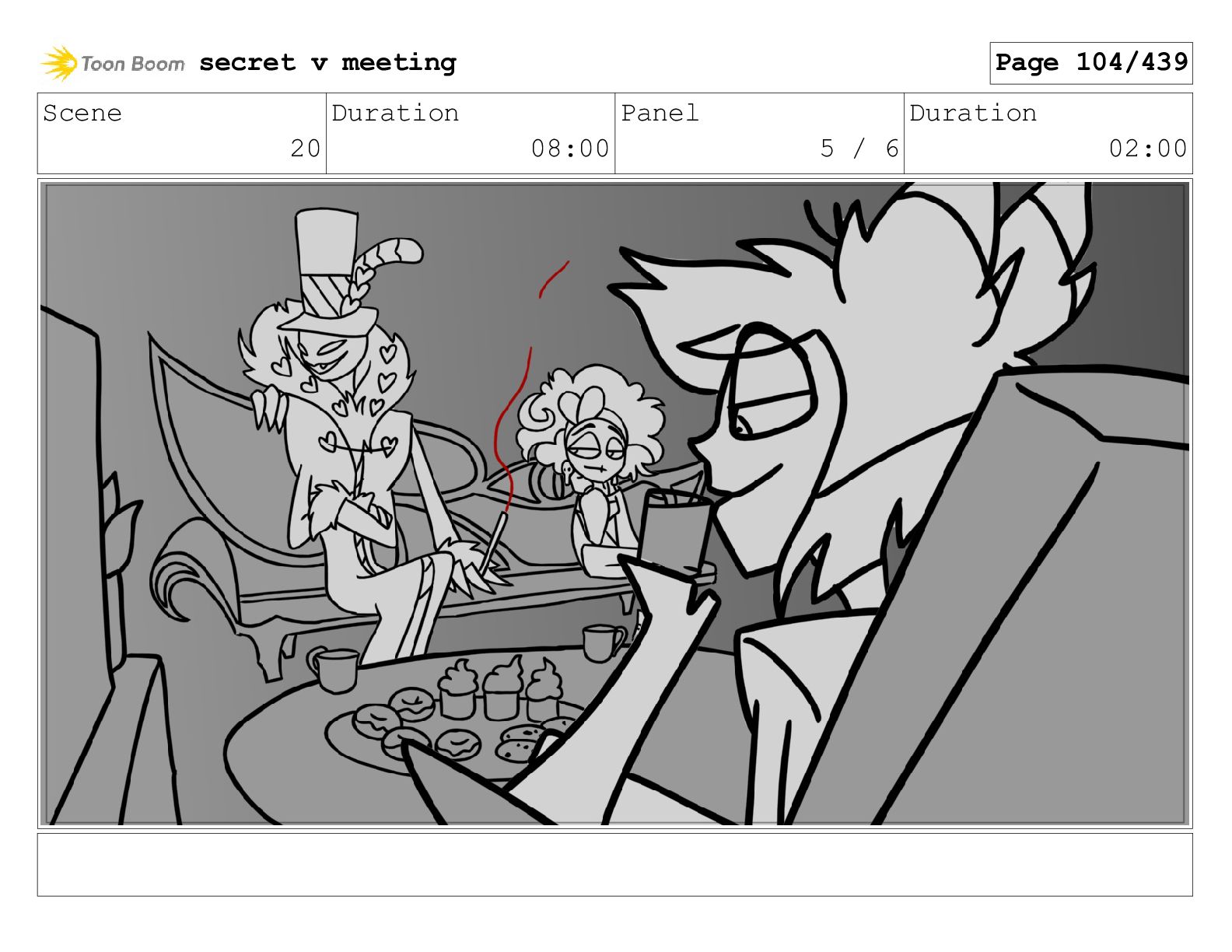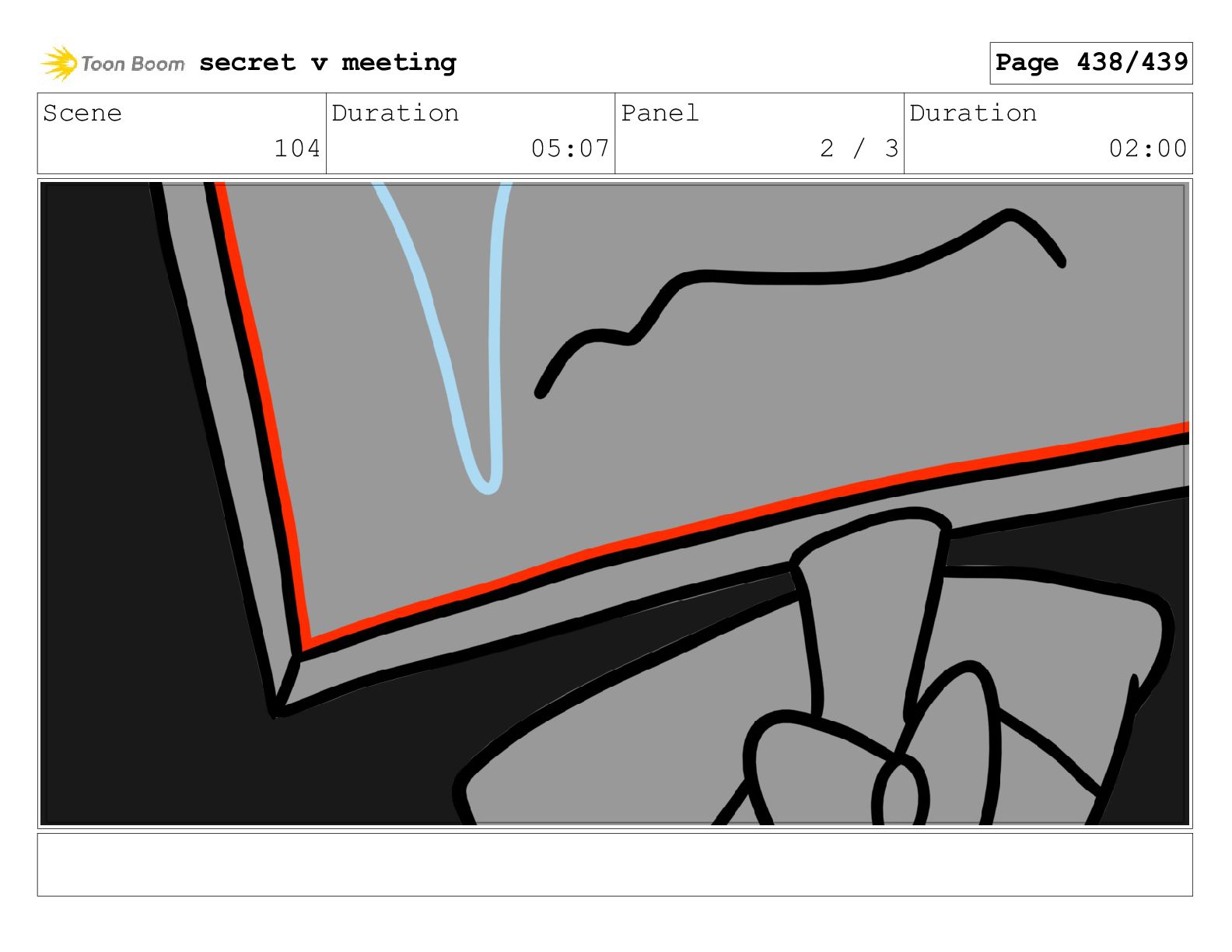 Scene 104 Duration 05:07 Panel 2 / 3 Duration 02:00