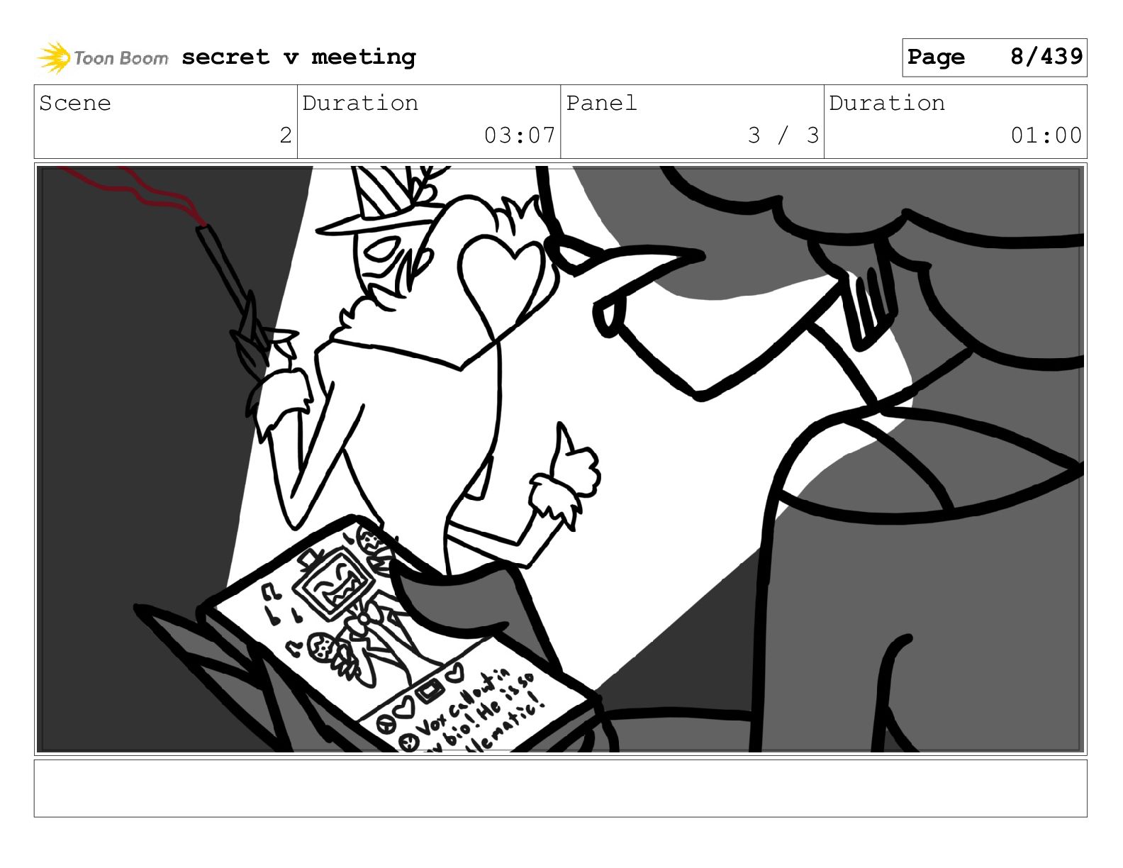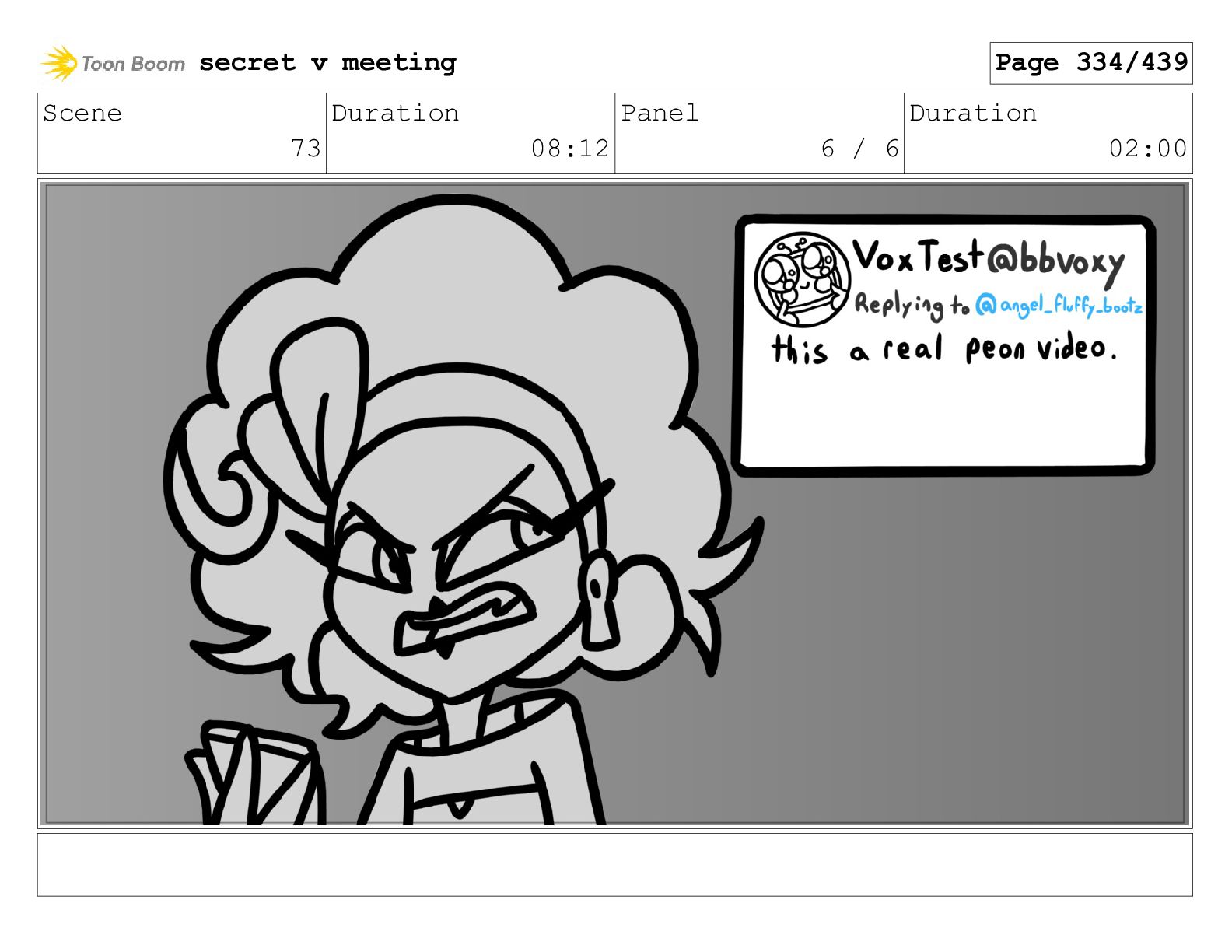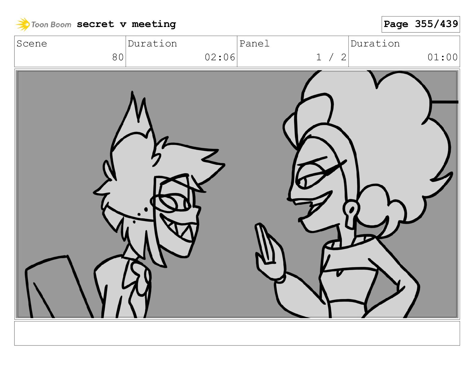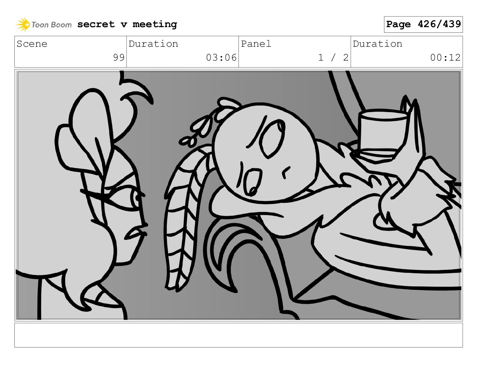 Scene 99 Duration 03:06 Panel 1 / 2 Duration 00:12