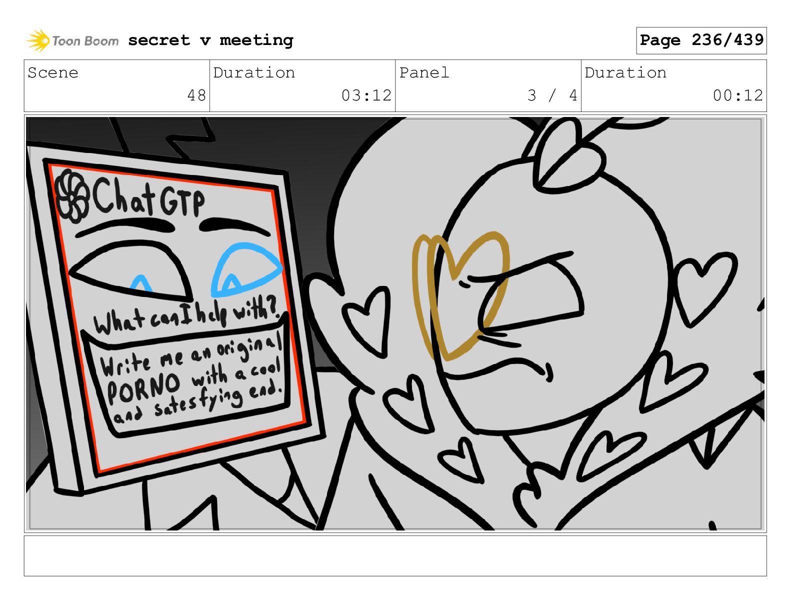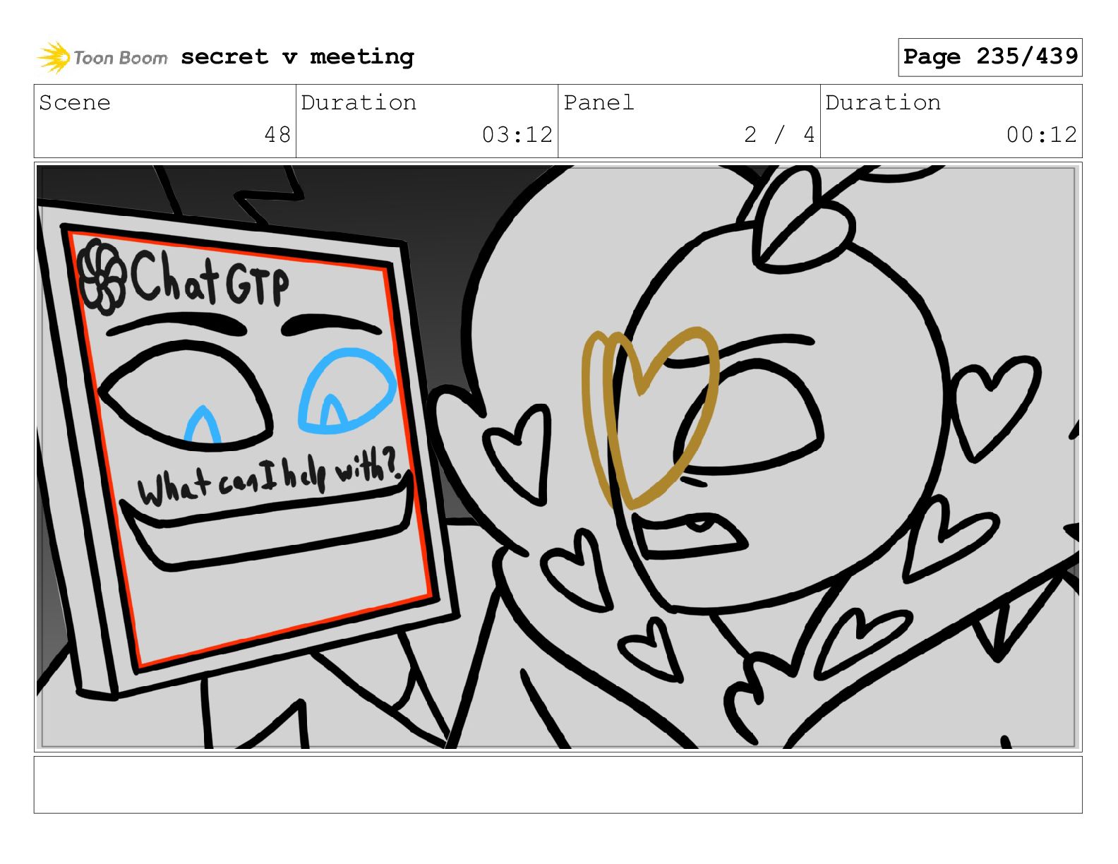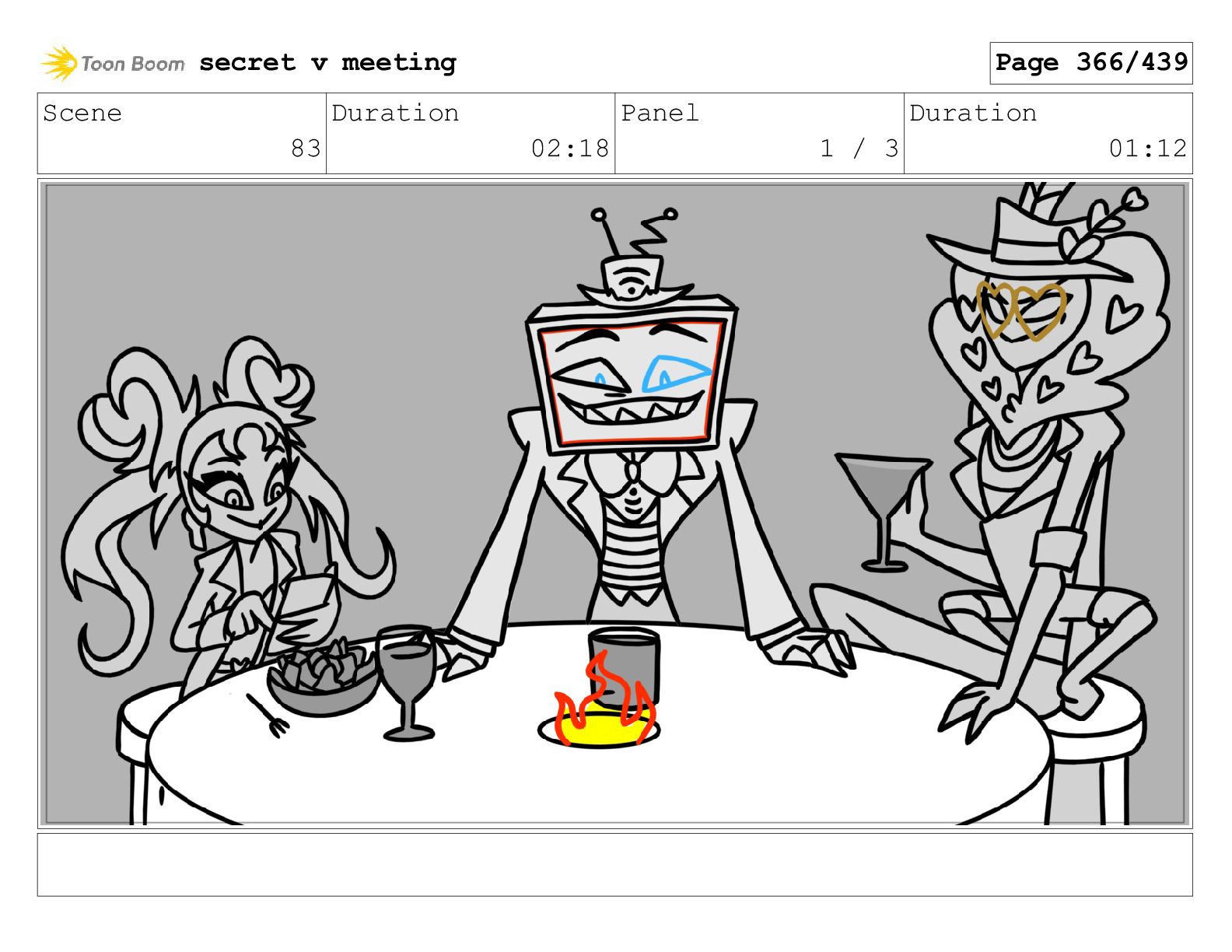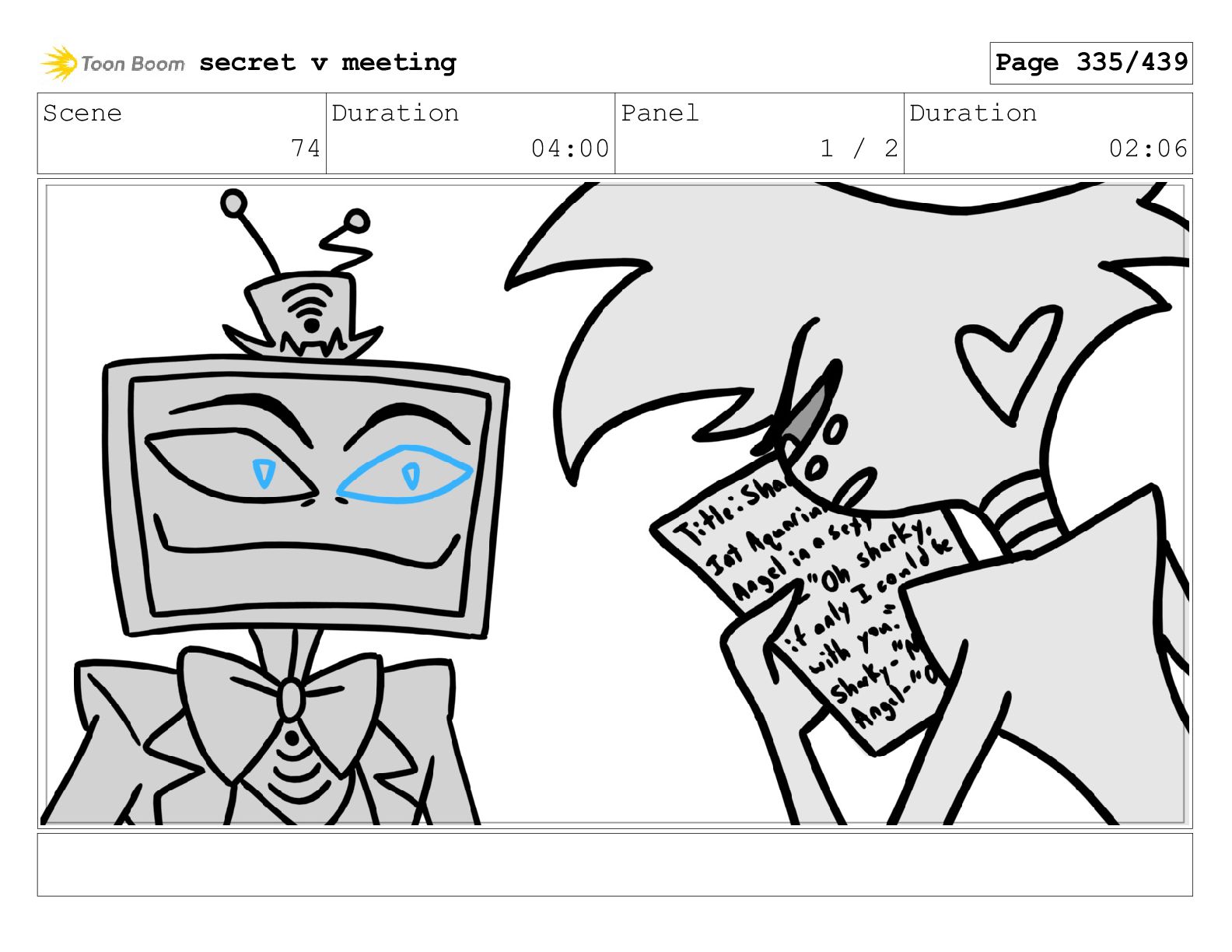 Scene 99 Duration 03:06 Panel 1 / 2 Duration 00:12