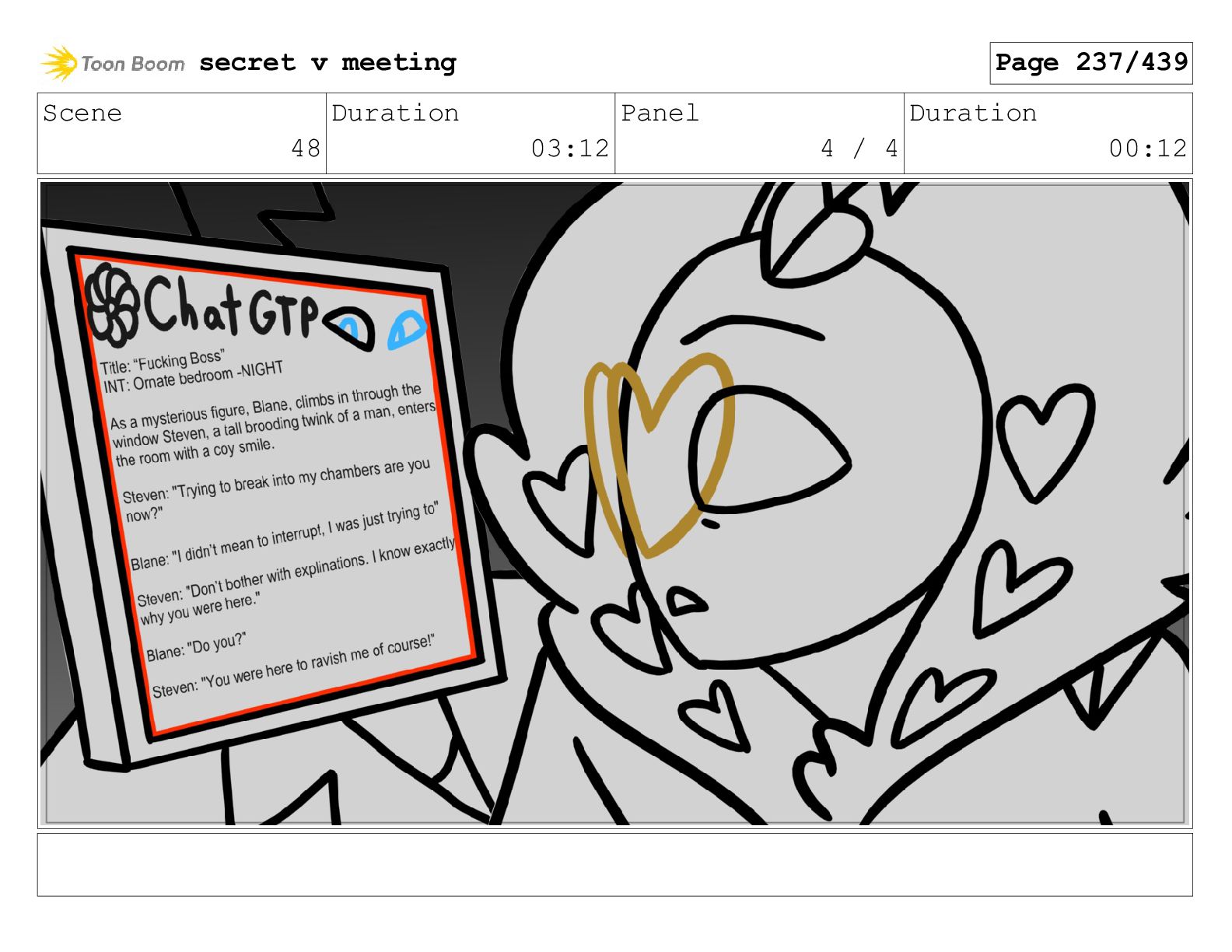 Scene 90 Duration 08:15 Panel 4 / 9 Duration 00:12