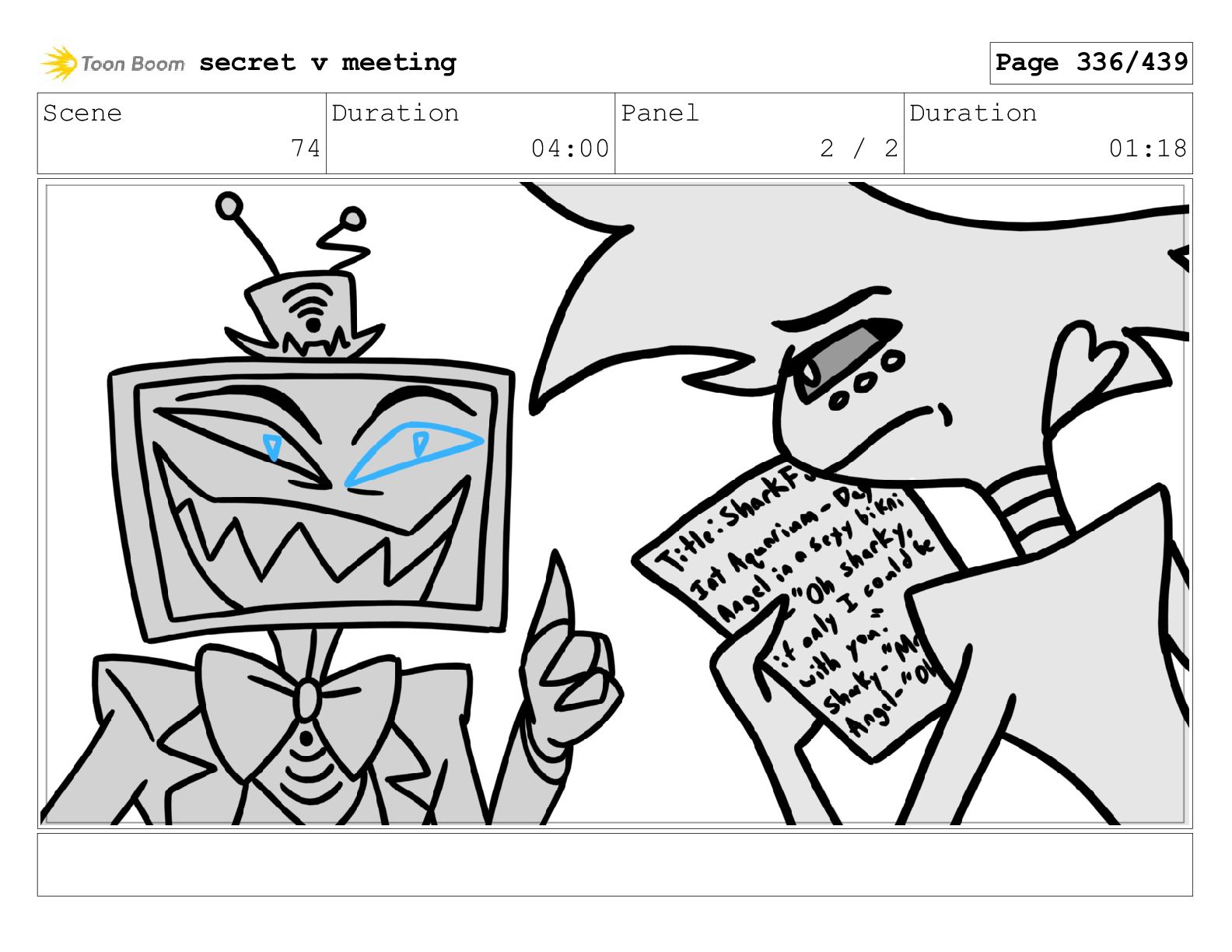 Scene 99 Duration 03:06 Panel 2 / 2 Duration 02:18