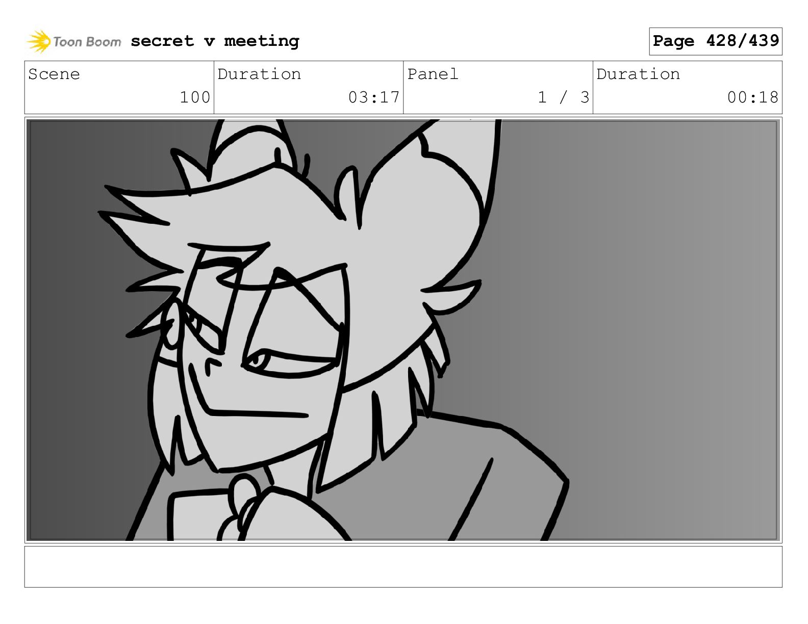 Scene 100 Duration 03:17 Panel 1 / 3 Duration 00:18