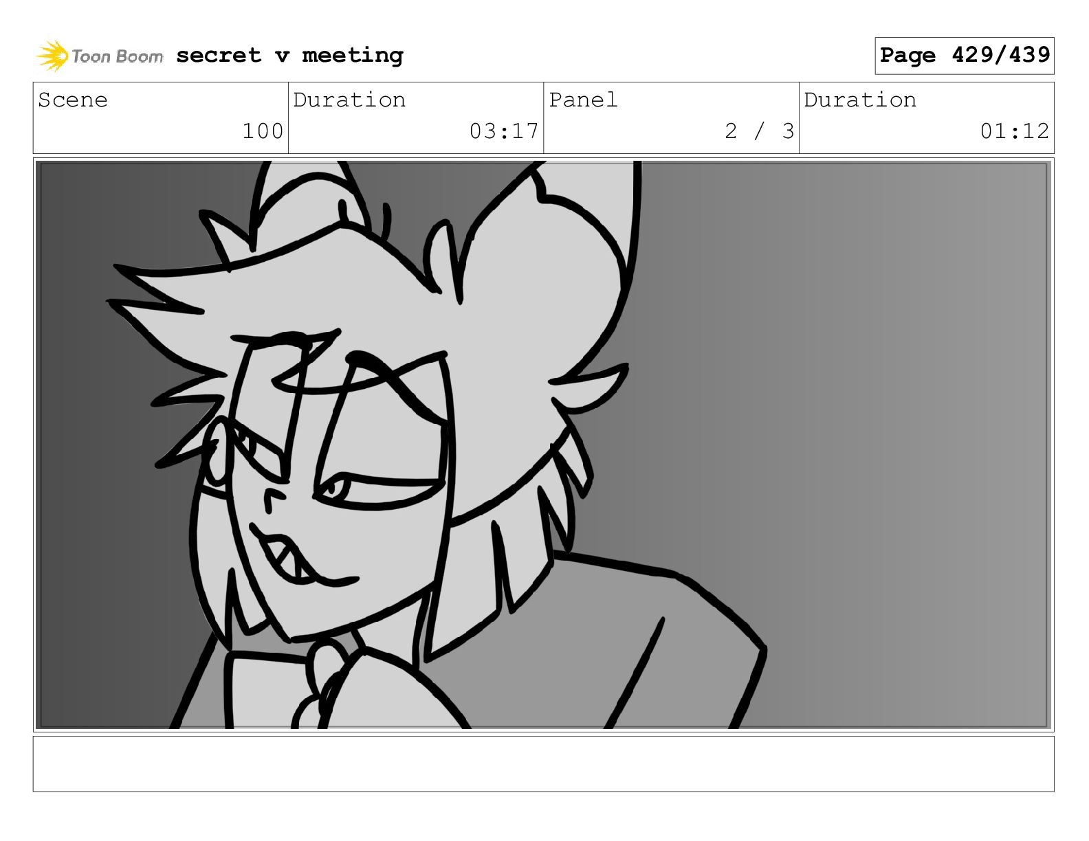 Scene 100 Duration 03:17 Panel 2 / 3 Duration 01:12