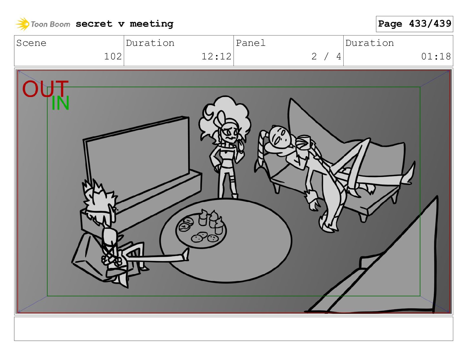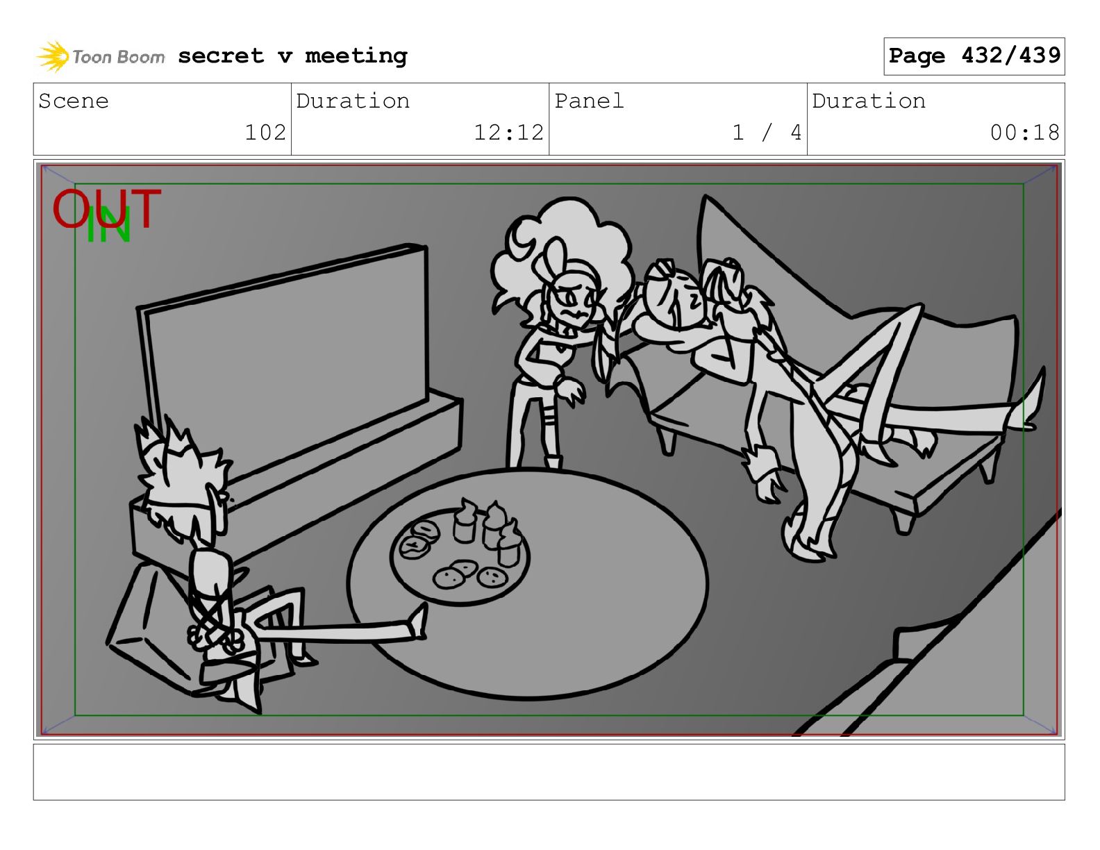 Scene 102 Duration 12:12 Panel 1 / 4 Duration 00:18