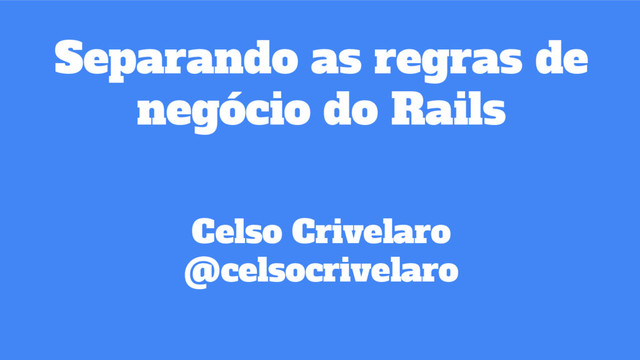 Separando as regras de negócio do Rails Celso Crivelaro @celsocrivelaro