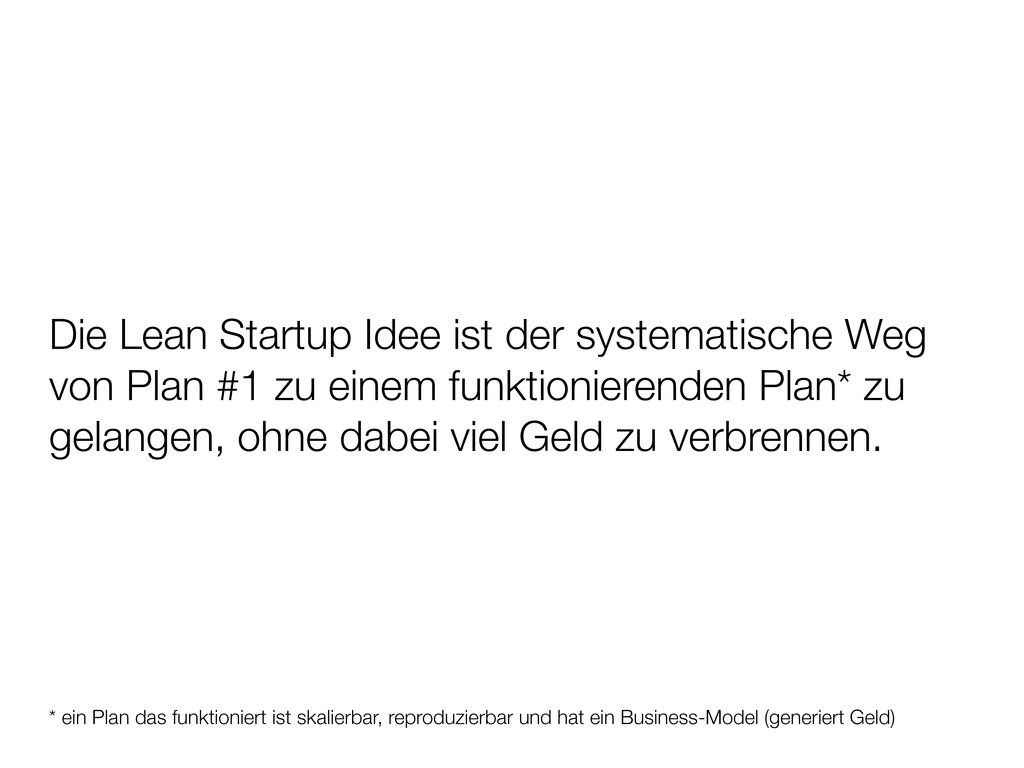 #1 zu einem funktionierenden Plan* zu gelangen, ohne dabei viel Geld zu verbrennen. * ein Plan das funktioniert ist skalierbar, reproduzierbar und hat ein Business-Model (generiert Geld)