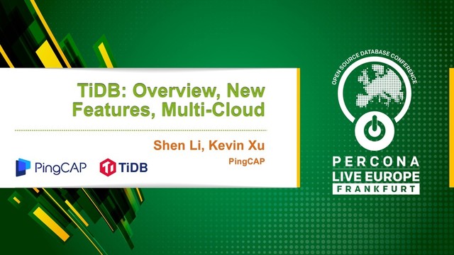 This keynote talk was delivered with Li Shen, VP of Engineering at PingCAP, at Percona Live Europe 2018, to provide a technical overview of TiDB, new features in version 2.1, and multi-cloud deployment using a Kubernetes Operator.
