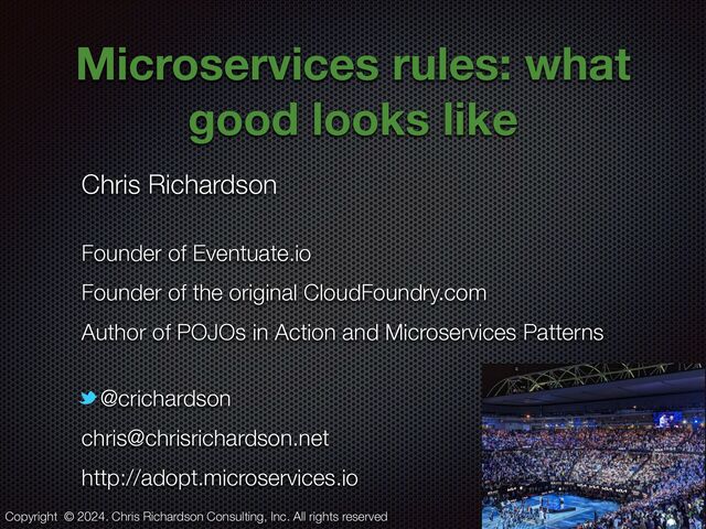 In this presentation I'll describe 11 software development and architecture rules (a.k.a. best practices) that should prevent an organization from making a mess of its microservice architecture.
