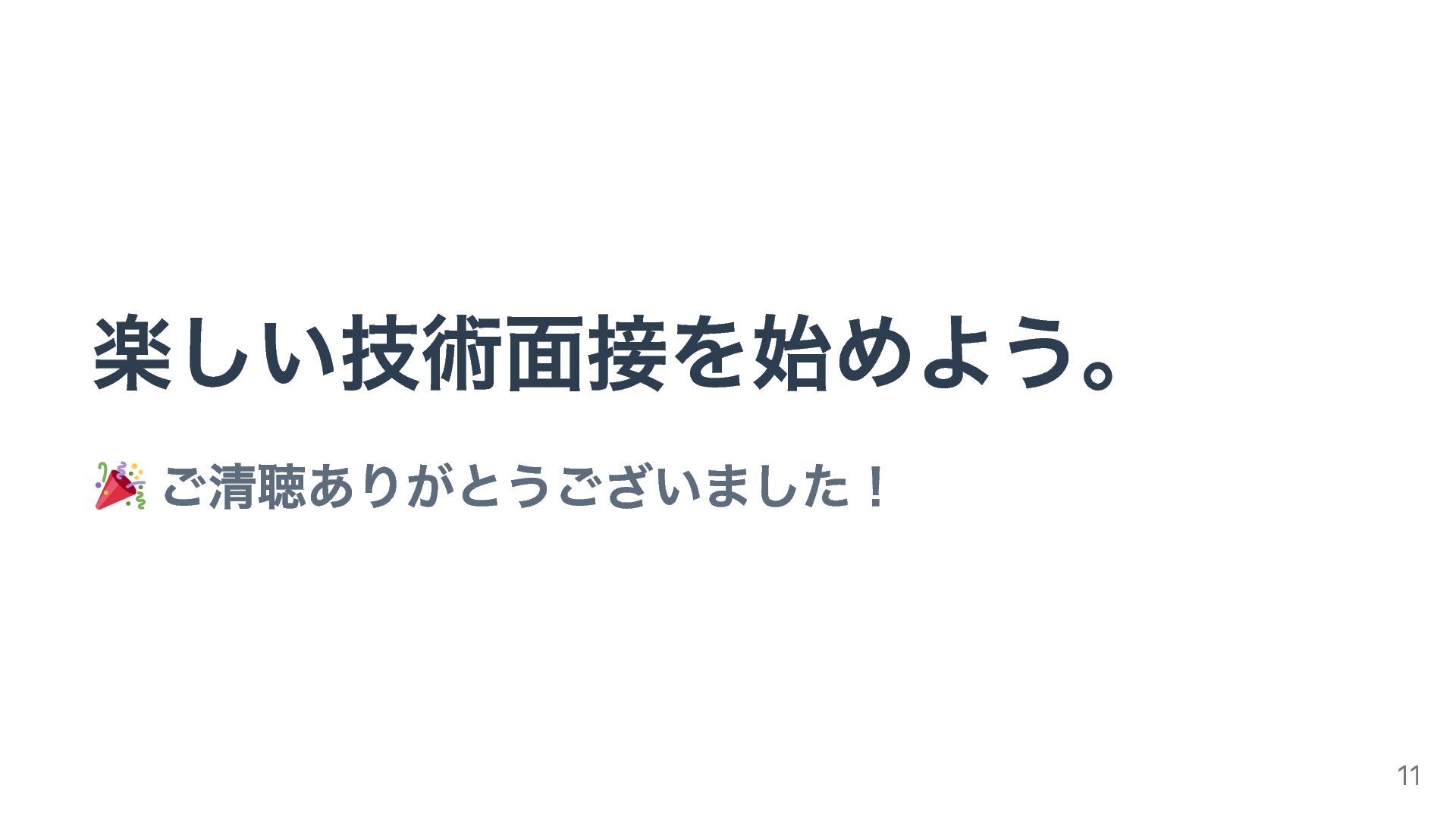 楽しい技術面接を始めよう。 ご清聴ありがとうございました! 11