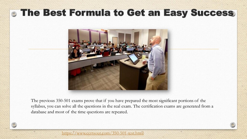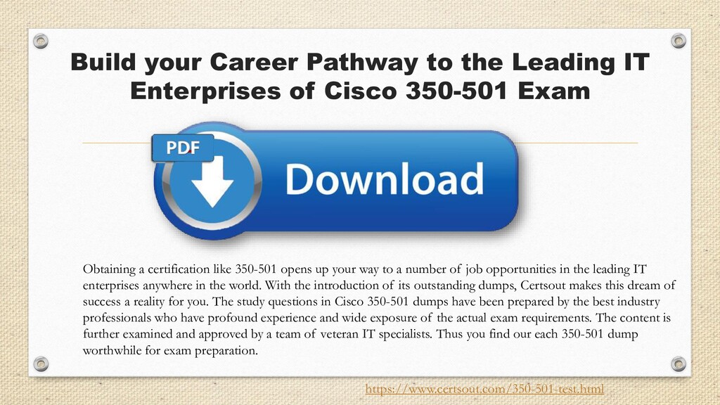 Certsout is the website that deals in preparation material for the exam for many years. According to my exposure and research, this is the right platform where you can get exact exam dumps. https://www.certsout.com/350-501-test.html