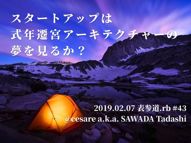 宮 アー キ テク チャ ー の 夢 を ⾒ る か ? 2019.02.07 表参道.rb # @cesare a.k.a. SAWADA Tadashi