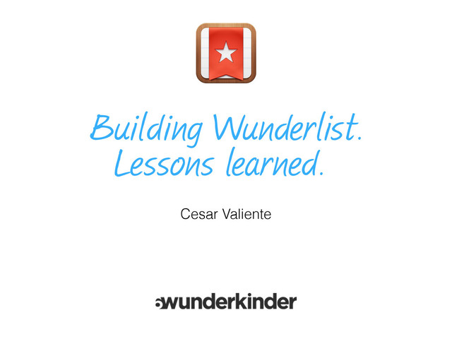 In this talk I cover the lessons we learned during the creation of Wunderlist 2, things that many people don't know until they face the specific problem, useful things that we sometimes forget, useful tips, advices, experiences, etc.
