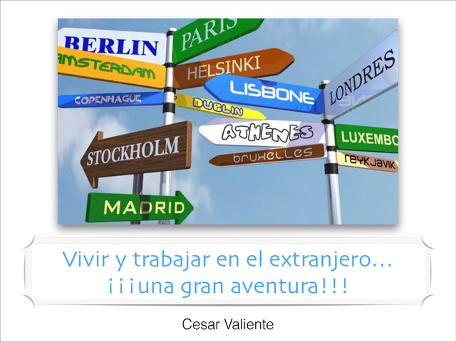 Esta charla trata de explicar de una manera cercana, útil y desenfadada el proceso de irte a vivir al extranjero, cómo empezar, entrevistas, conseguir un trabajo, que hacer una vez estas en tu nueva ciudad, lo bueno y lo malo de esta aventura, etc.