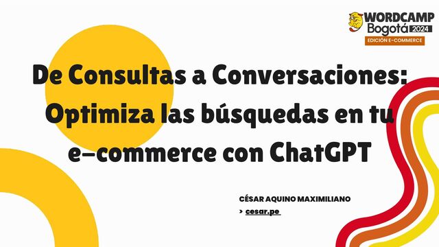 Charla realizada para la WordCamp Bogota 2024 en donde explico como mejorar las búsquedas de los ecommerce utilizando ChatGPT para que interprete lo buscado y nos extraiga información que luego usaremos en nuestros querys.