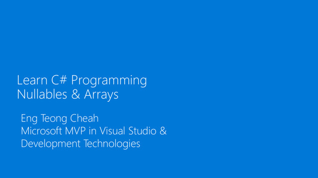 to array which should be clear to a C# programmer: - Multi-dimensional arrays - Jagged arrays - Passing arrays to functions - Param arrays - The Array Class