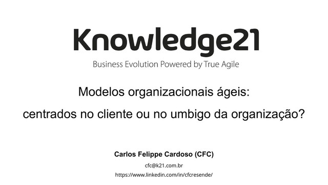 foi educado a vida inteira a ser centrado no umbigo da própria organização Pergunta: Nossos últimos produtos foram criados de maneira puxada ou empurrada? Modelos organizacionais ágeis, centrados no cliente ou no umbigo da organização?