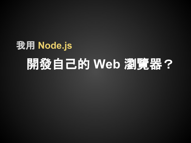 Support all of Chromium features • HTML5/CSS3/WebGL • WebRTC, Webcam and speech input • off-screen rendering support • Cross-platform(Linux, Windows, Mac) • C/C++, Java, .Net, .net/Mono, Python, Delphi CEF Features JavaScript?