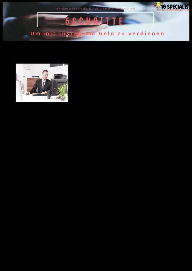 du noch ein paar Fakten über Instagram wissen“ 1.! Bei&Instagram&ist&die&Interaktion&58x&höher&als& bei&Facebook&(Das&Soziale&Netzwerk&ist&sehr& persönlich&und&schafft&vertrauen)& 2.! Es&gibt&400&Millionen&aktive&User&(So&gut&wie& jede&Zielgruppe&ist&vorhanden)& 3.! In&Zukunft&werden&90%&der&Webseitenbesucher& „mobile“&sein& Da auf Instagram sehr wenig Werbung geschaltet wird, ist der durchschnittliche Kundenwert höher als bei Facebook und z.B gesponserte Postings von Influencer kosten im Verhältnis weniger als Facebook Werbung, haben aber einen höheren ROI (Return of Investment). Schritt 1: Entscheide dich für eine Nische Alles beginnt mit einer Idee. Suche dir hierfür eine spezielle Nische bzw. ein Thema. Dies ist aber abhängig von dem Weg, wie du mit Instagram Geld verdienen willst. Deshalb entscheide dich für einen aus Schritt 5 und fahre danach hier weiter fort. Es gibt wirklich unzählige Nischen, sowie sogenannte „Mikronischen“. Ein paar davon wären Haustiere (Hunde, Katzen, Exotische Tiere), Surfen, Tauchen, Sportarten, Fashion, Fitness, Garten, Gaming, Sprüche/Zitate zu einem Thema,... Wenn du zum Beispiel ein leidenschaftlicher Koch bist, wäre es perfekt Koch-Tutorials, Essensbilder, etc. zu wählen. Wenn du Fitnesstrainer bist, wäre es perfekt dich effektiv auf Instagram zu platzieren Da es viele Interessenten zu jedem Thema gibt, ist der Markt noch relativ klein. Vor allem im deutschsprachigen Raum! Natürlich kannst du auch ein Internationales Profil aufbauen. Du solltest aber vorab wissen, wie du damit Geld verdienen willst. Regergiere einfach im Internet nach allen möglichen Hobbys, Freizeitaktivitäten, usw. und du wirst etwas Passendes finden.