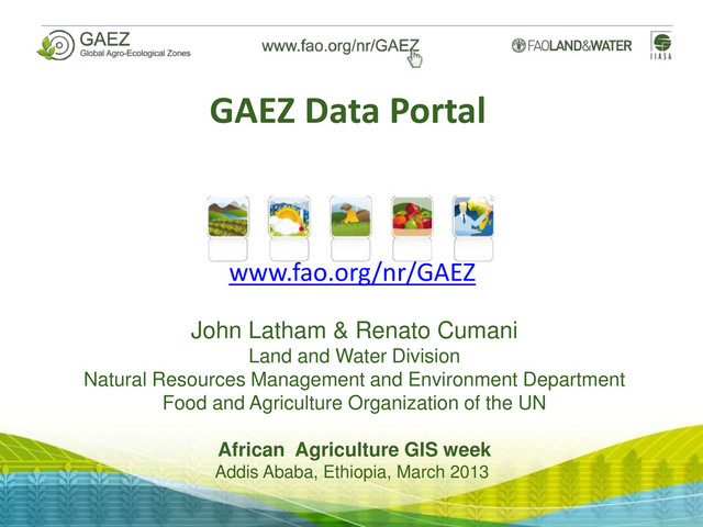 GAEZ database and resources; enables users management; delivers terabytes of spatial data, maps, tables, statistics, metadata, reports; Fully documented (Data model, User’s Manual, GAEZ definitions, FAQ, limitations, and hints available) ; Compliant with FAO definitions, classifications and standards, ISO metadata standards to feed FAO GeoNetwork as part of data.fao.org