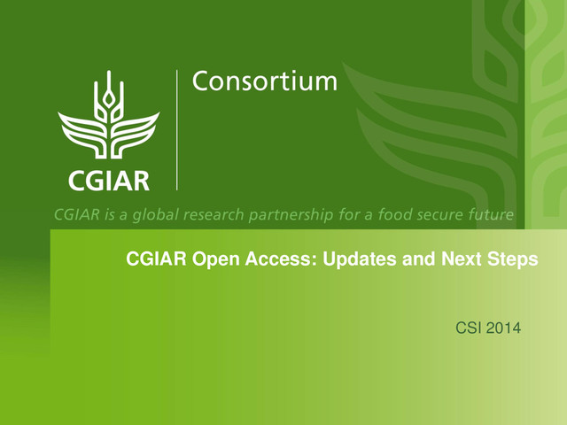 (RM) Platform for planning, reporting, monitoring, and providing for public access to CGIAR research. • Task Force created: Michael Marus (Chair), Joanna Kane-Potaka (ICRISAT), Ravi Prabhu (ICRAF), John McIntire (ILRI), Peter McCornick (IWMI), Robert Chapman (Bioversity), Luis Anibal Solórzano Cárdenas (CGIAR Consortium), Tania Jordan (CGIAR Consortium) • Google group established, 1st virtual meeting scheduled. • Working on gathering/identifying concrete RM requirements at all levels Consortium, Center, CRP, Donor, Partner • Working on identifying best-of-breed solutions for possible scaling to CRPs Thank You.