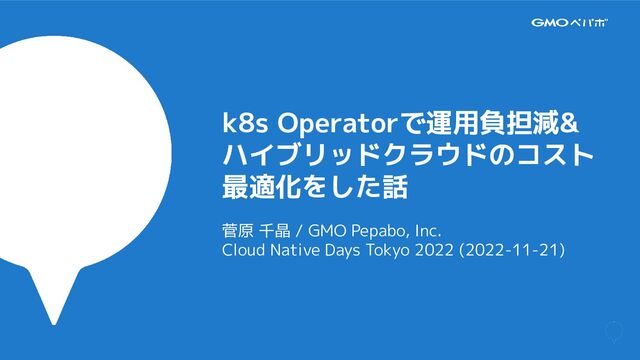 GMOペパボが提供する多くのサービスはハイブリッドクラウドで動作しています。 プライベートクラウドは安価であるメリットがある一方でスケーリングに制約があり、それを補うためにパブリッククラウドへリクエストをオフロードする運用を行っていました。 これまで職人技で調整していたパブリッククラウドへのリクエストのオフロード操作をk8s operatorを開発し自動で行うようにしました。 この経験から得られたoperatorで運用自動化を行うメリットについて解説します。