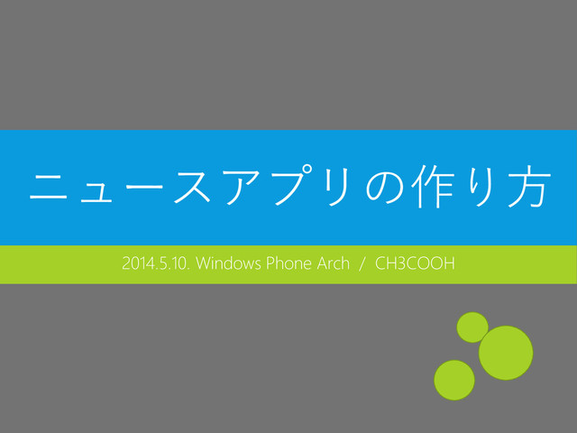 ニュースアプリの作り方 2014.5.10. Windows Phone Arch / CH3COOH