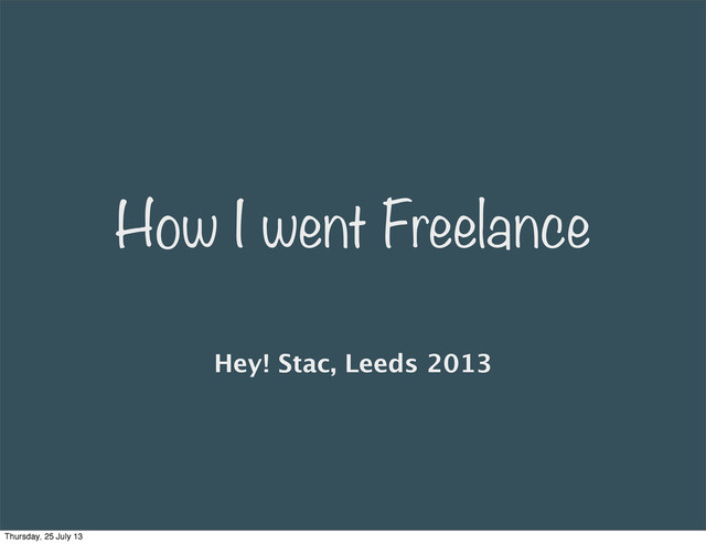 My first ever talk which shows how I approached making the leap to go freelance. Hopefully will inspire others to do the same.
