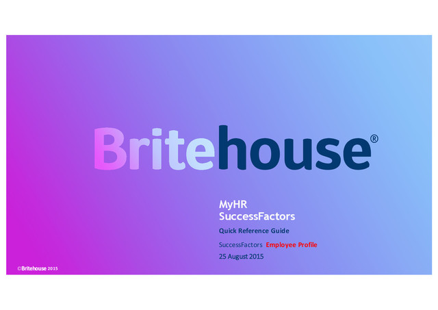 6 7 8 Previous Employment -‐ All your employment before joining Britehouse. Leadership Experience -‐ List all your Leadership experiences, not only those while you worked for Britehouse. 5 6 Certification/Licenses -‐ All your certification or licenses will be maintained here. Achievements/Awards -‐ Capture all your achievements and awards. 7 8
