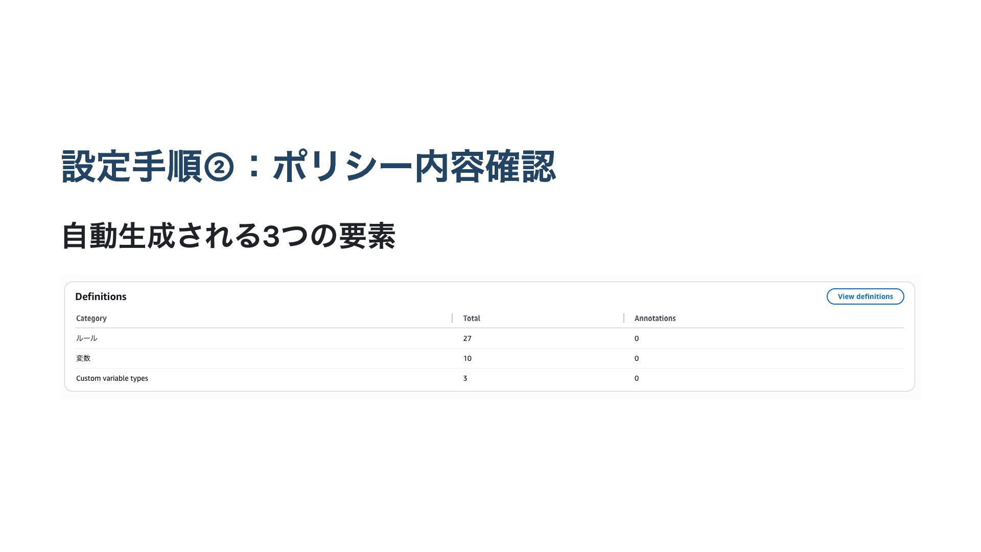設定手順②:ポリシー内容確認 自動生成される3つの要素
