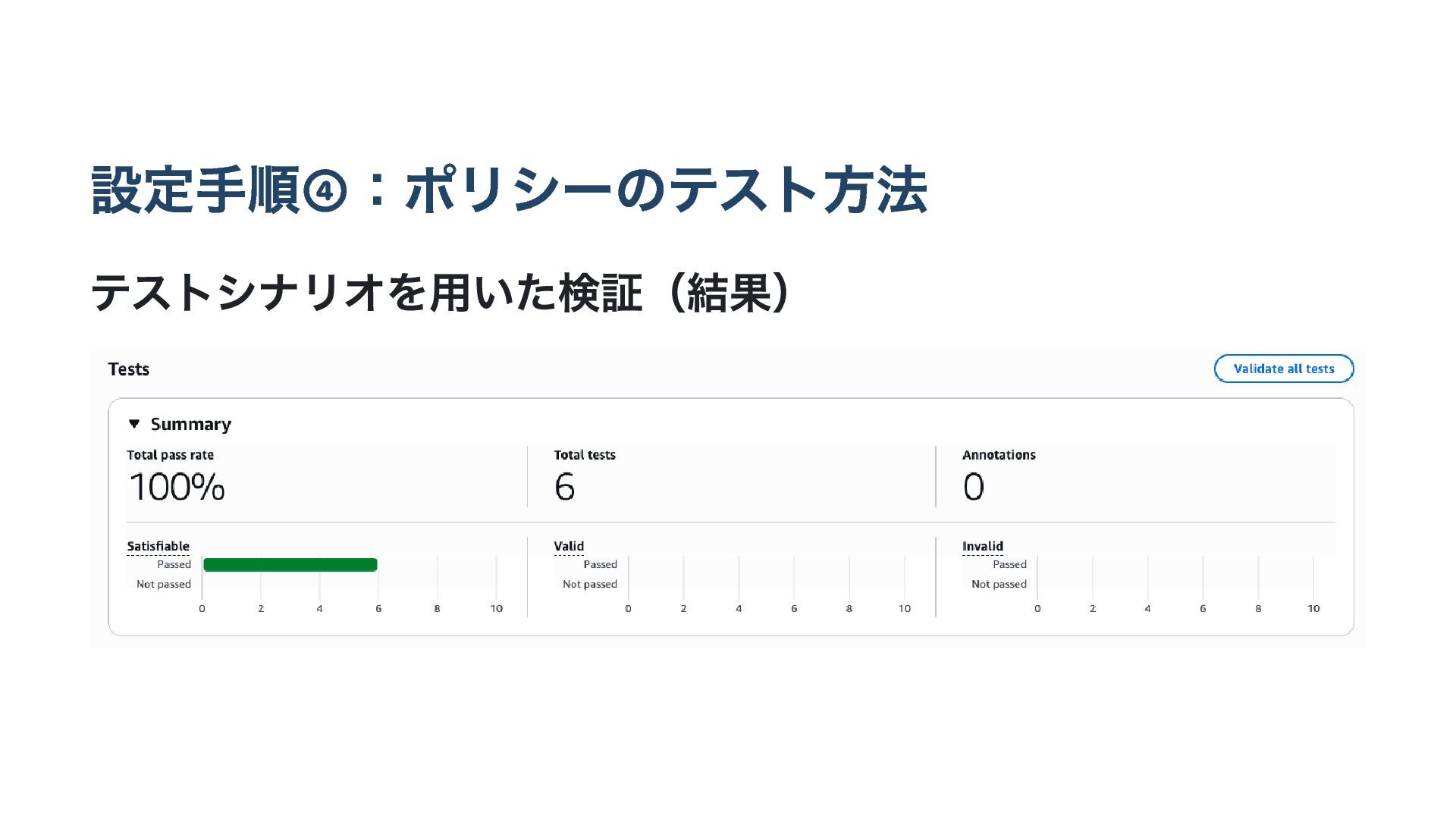設定手順④:ポリシーのテスト方法 テストシナリオを用いた検証(結果)