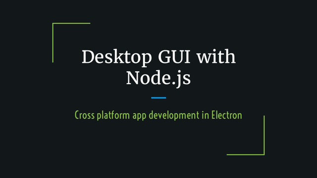 earlier package was called “electron-prebuilt” ◦ works in Windows 7+, Mac 10.x and Linux • sudo npm install --arch=ia32 -g electron ◦ to force a different architecture