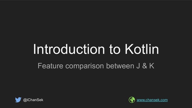 6 years • Created few apps like Chanse Games, Chanse Shops • A failure Entrepreneur • Author of an about to be released Kotlin book • Only know upto Java-7 • Worked with Kotlin since last 1 year • Organizing Bengaluru’s Kotlin Group - BlrKotlin