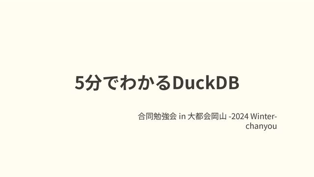5分でわかるDuckDB 合同勉強会 in ⼤都会岡⼭ -2024 Winter- chanyou