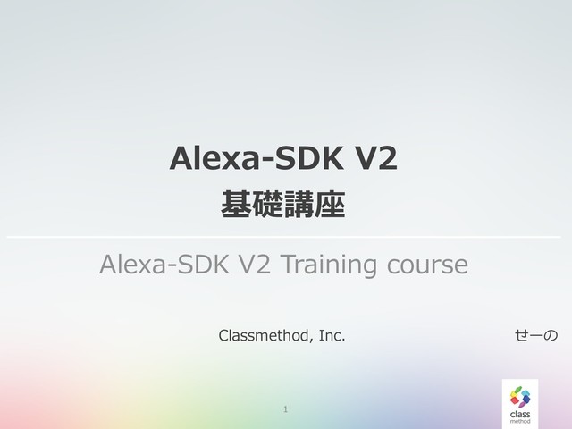 Alexa-SDK V2 基礎講座 Alexa-SDK V2 Training course 1 Classmethod, Inc.