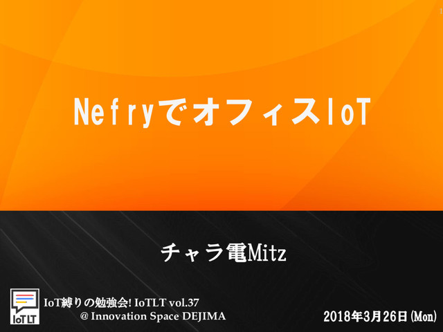 1 チャラ電Mitz NefryでオフィスIoT 2018年3月26日(Mon) IoT縛りの勉強会! IoTLT vol.37 @ Innovation Space