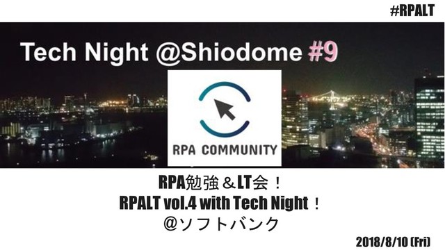 RPA勉強&LT会! RPALT vol.4 with Tech Night! @ソフトバンク 2018/8/10 (Fri) #RPALT