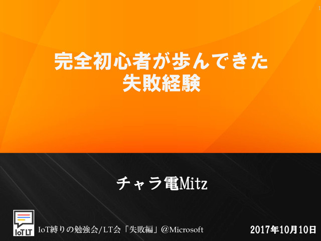1 チャラ電Mitz 完全初心者が歩んできた 失敗経験 2017年10月10日 IoT縛りの勉強会/LT会「失敗編」@Microsoft