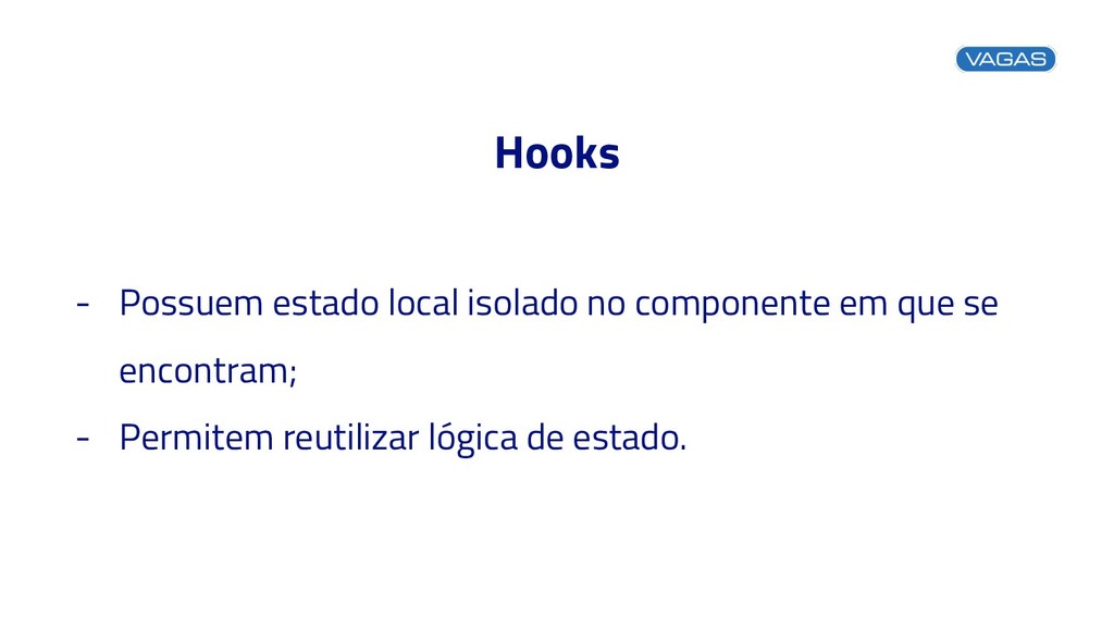 se encontram; - Permitem reutilizar lógica de estado.