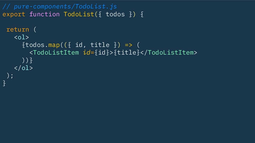 // pure-components/TodoList.js export function TodoList({ todos }) { return (