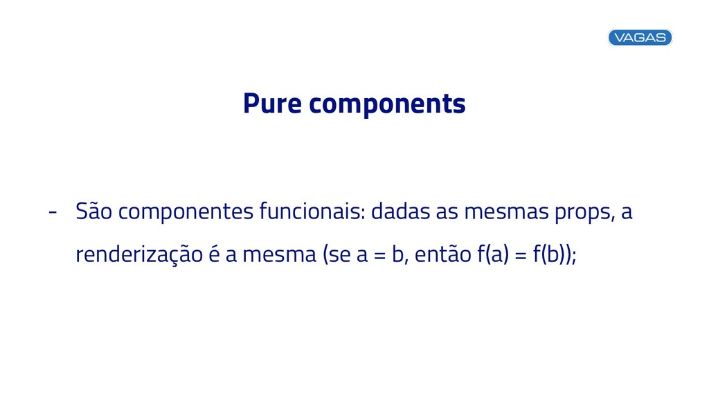 Pure components - Recebem, exclusivamente via props, valores de estado