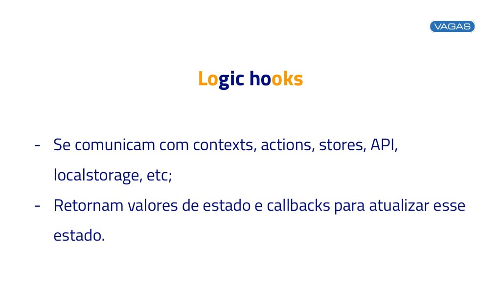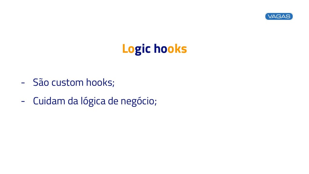 Logic hooks - São custom hooks; - Cuidam da lógica